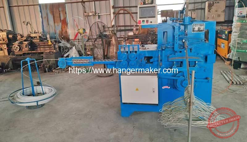 Automatic Plastic Coated Wire Clothes Hanger Making Machine 2024 is used to make plastic-coated wire clothes hangers. it adopt plc control and servo motor steel wire feeding, which makes the steel wire feeding is accurate and fast. It updated structure on old type clothes hanger machine, which read faster speed which 45pcs per min and easy to adjust and maintain.